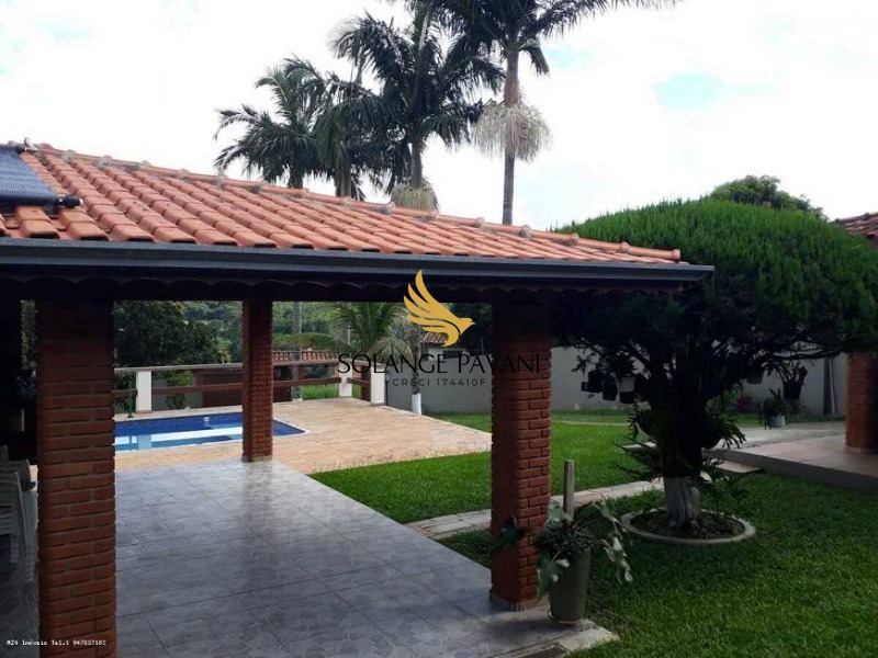 Excelente chácara para venda com 1006 m² de terreno e 213 m² de área construída. Casa térrea avarandada com 03 amplos dormitórios sendo uma suíte, 01 banheiro social, sala dois ambientes (jantar e estar), cozinha planejada, lavanderia, quartinho de ferramentas, pomar, churrasqueira, fogão a lenha e forno, piscina com cascata, 02 vagas cobertas e várias descobertas. Portão eletrônico, toda murada com cerca elétrica para maior segurança.